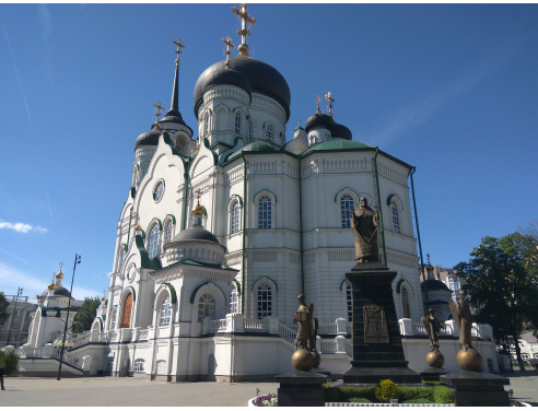 Затем паломничество продолжилось посещением Благовещенского кафедрального собора, который считается третьим по величине в России и одним из самых высоких православных храмов в мире - его высшая точка находится на высоте 97 метров.