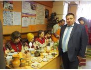 В фойе института в течение первого дня работы конференции по традиции работали выставки. О достижениях царской России рассказывала экспозиция «Россия в эпоху императора Николая II: реформы, преобразования, достижения», подготовленная обществом «Двуглавый орёл». Она серьезно заинтересовала участников, особенно студентов и школьников, также работали выставки декоративно-прикладного искусства. Рядом была организована выставка «Молитвенная традиция Руси» и работы участников Первого Всероссийского конкурса славянской каллиграфии. Также была представлена научная и краеведческая литература. Праздничную атмосферу в фойе создавал фольклорный ансамбль «Чишмелек» из села Париж. О нагайбакской истории и культуре рассказывали книги и изделия народных промыслов.